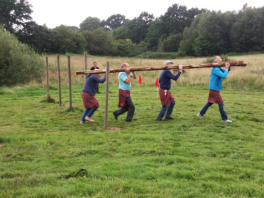 (Baumstammwurf), "Sheaf Toss" (Heusack-Hochwurf) und "Tug of war" (Tauziehen) sind auch