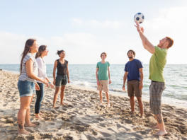 ... klassische Strandspiele wie Beachsoccer, Beachvolleyball, Federball, Catchball, Boule oder Frisbee,