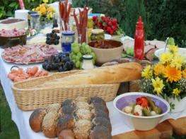 - Getränke (Mineralwasser, Limonade, Saft sowie Bier, Rotwein, Weißwein und Sekt)