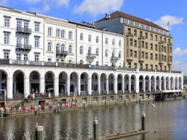 Hamburgs Innenstadt liegt an der Binnenalster mit seiner weithin sichtbaren 60 Meter hohen Alsterfontäne, die den Hamburg-Besucher schon von weitem begrüßt.