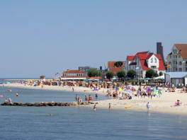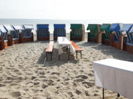 In Laboe beziehen Sie eine unweit des Schiffsanlegers exklusiv für Sie errichtete Strandkorbkulisse.