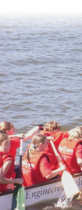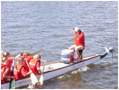 durch Muskelkraft von insgesamt 16 – 20 Paddlern angetrieben. Ein Trommler gibt den Takt vor.