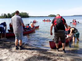 Wir begrüßen Sie mit einem Frühstücks-Imbiss am Seeufer. Für die Schatzsuche bestücken wir die Kanus mit aureichend Getränken und kleinen Snacks.
