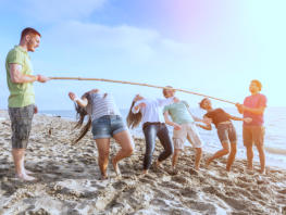 zu Beginn Ihrer Strandolympiade das ein oder andere Teamspiel, bei dem