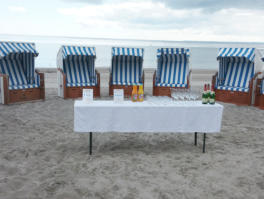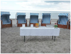 Im Anschluss verlassen wir den Naturstrand und wechseln zum Travemünder Badestrand. In einer exklusiv für Sie errichteten Strandkorbkulisse