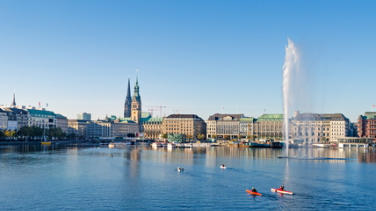 Stadtgebiet und der seenartigen Alster im Herzen Hamburgs.