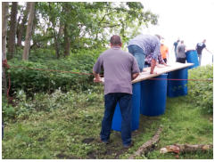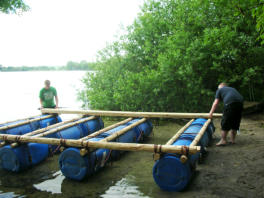 eine Fahrt frei, die unseren Sicherheitsansprüchen genügen. Das fertige Floß ist äußerst stabil und kann auch bei einigen Windstärken sicher über den See geführt werden.