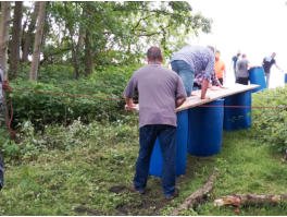 mit vereinten Kräften ein Floß. Das Team hat diese Aufgabe